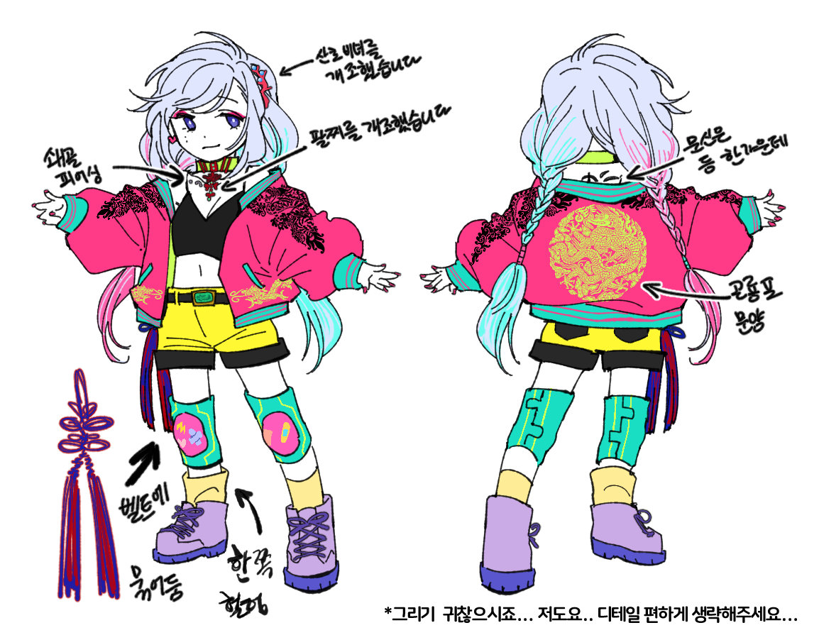 4. 내용 및 자료 (캐릭터 외관, 간단한 성격, 원하시는 구도나 자세, 크기, 컬러 등)